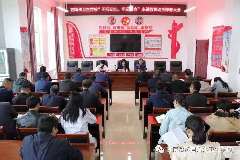 动员部署大会上,赵苏静书记传达了9月12日州卫生健康委党委书记、主任王武同志在州直卫生健康系统“不忘初心、牢记使命”主题教育动员部署会上的讲话;中共甘南州卫生健康委员会委员会印发《关于开展“不忘初心、牢记使命”主题教育的实施方案》的通知等文件精神,宣布了《中共威廉希尔williamhill总支委员会关于成立“不忘初心、牢记使命”主题教育领导小组的通知》,并代表甘南州卫公司党总支作了动员讲话和安排部署。