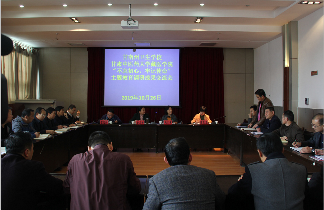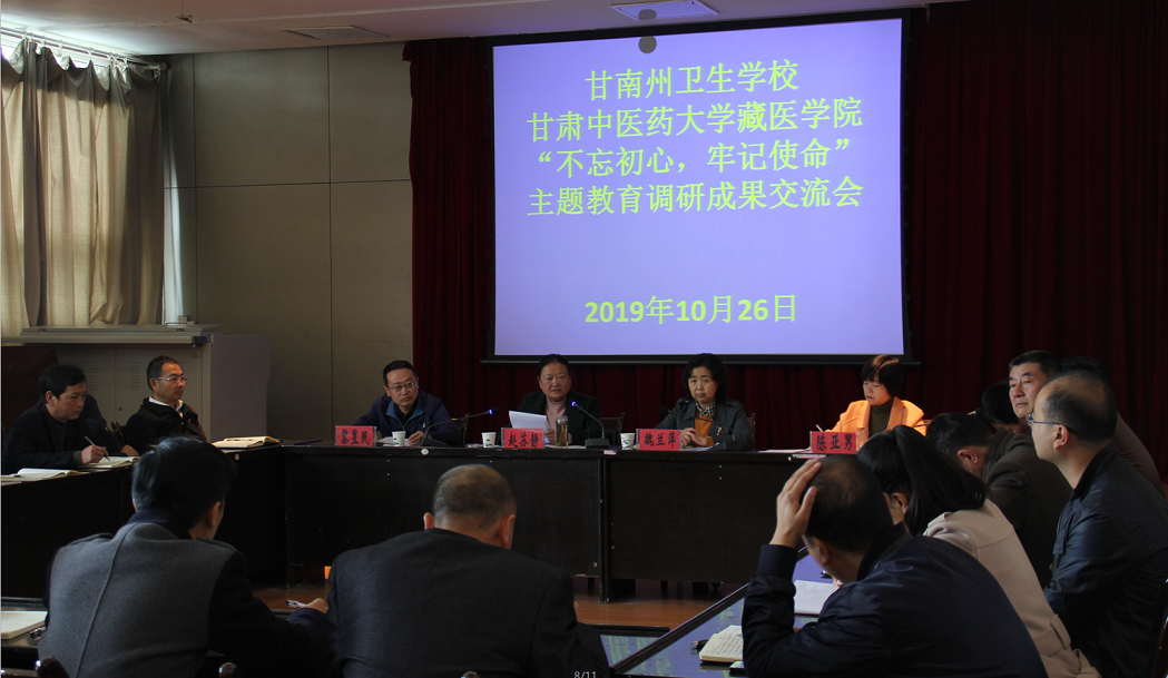 10月26日上午,在教学楼五楼学术厅召开“不忘初心、牢记使命”主题教育调研成果交流会。州卫生健康委第一巡回指导组组长、党组成员、州计划生育协会副会长魏兰萍,党委办公室主任陈亚男到会指导,公司副科级以上干部共20余人参加会议。会议由公司党总支书记、董事长赵苏静同志主持。