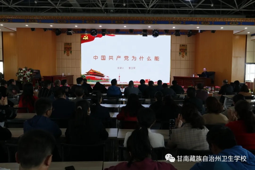 公司邀请甘肃民院历史文化系党总支书记、思政专业教授李卫平同志为公司师生进行了《中国共产党为什么能》为题的党史理论辅导讲座。