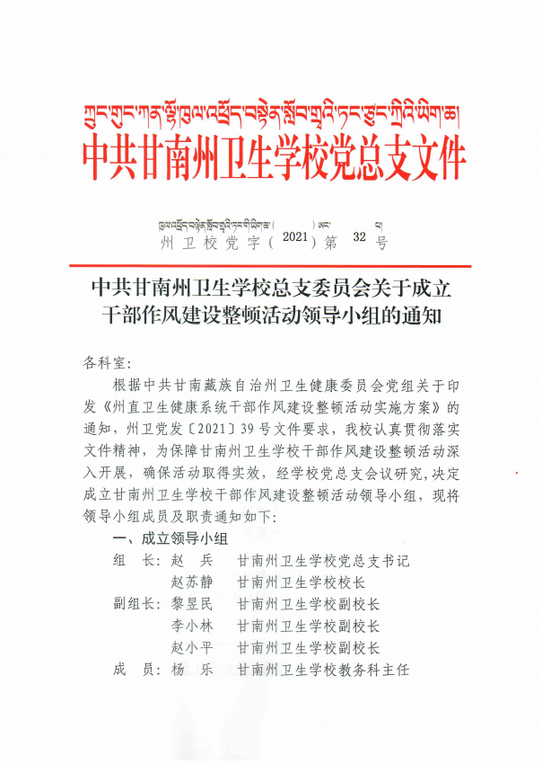 中共威廉希尔williamhill总支委员会关于成立干部作风建设整顿活动领导小组的通知