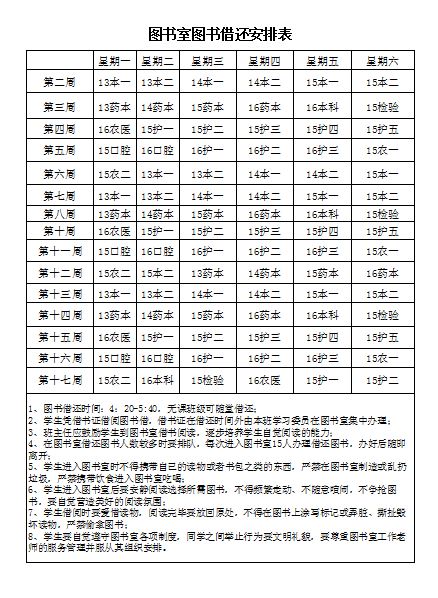 图书室图书借还安排表