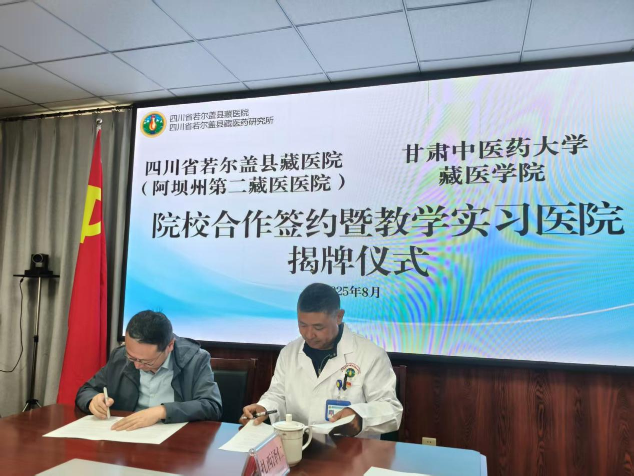 四川省若盖县藏医院(阿坝州第二藏医医院)、四川省若尔盖县藏医药研究所,作为四川省阿坝地区特色鲜明的藏医院,集科研、教学、传承、医疗、制剂生产五位一体的二级甲等民族医院,始终以满足人民群众的藏医药服务需求为目标,秉承藏医药传统,发挥藏医药特色优势,享誉国内外。今后双方在人才培养、技术提升、团队建设等方面深度交流,积极探索,在员工实习与就业上需更进一步加强合作,根据医院的实际需求,有针对性地培养输送高质量的藏医药专业人才,为医院的发展注入新鲜血液。