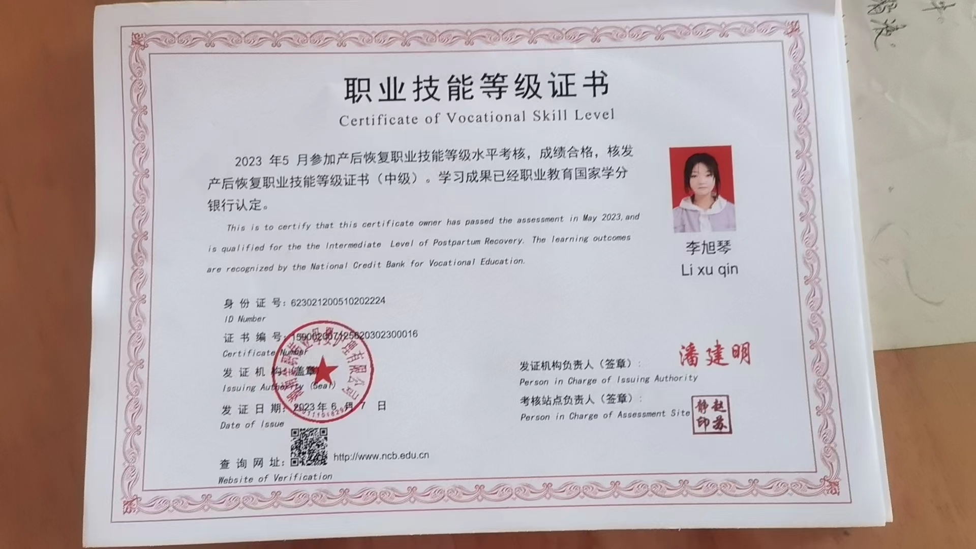 2023年4月7日,公司首次考评“1+X”产后恢复、幼儿照护中级证书。通过专业老师培训、网上答题、现场实操、异地考评员打分等环节,最终共有62名员工通过考试考评,获取了幼儿照护初级证书。通过率达到80%