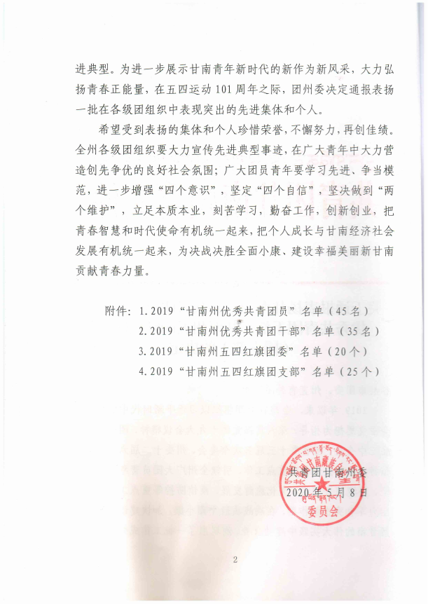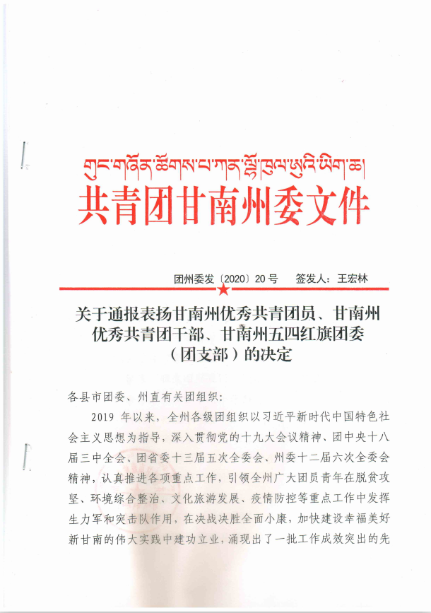 在五四运动101周年之际,公司团委荣获共青团甘南州委2019“甘南州五四红旗团委”荣誉称号。