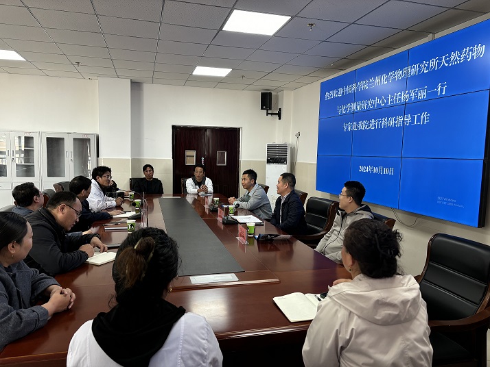 中国科公司兰州化学物理研究所天然药物与化学测量研究中心杨军丽一行在公司召开科研工作指导交流座谈会