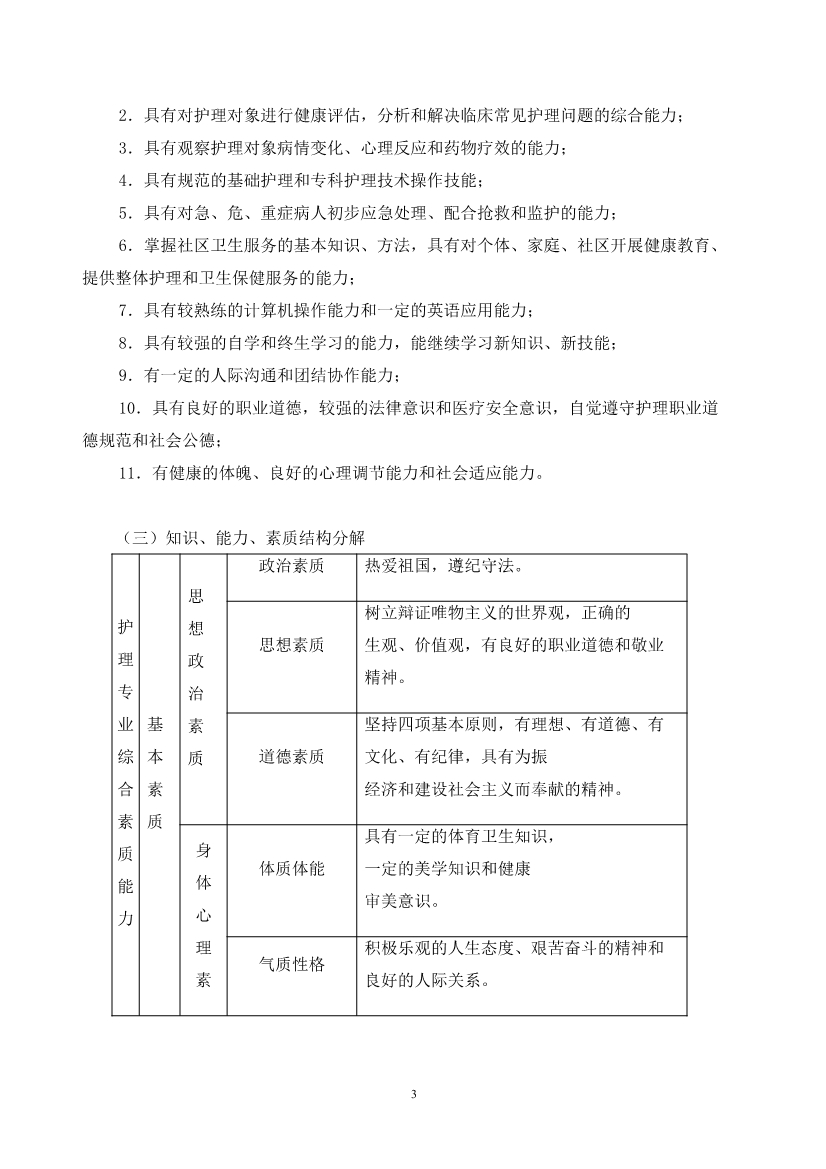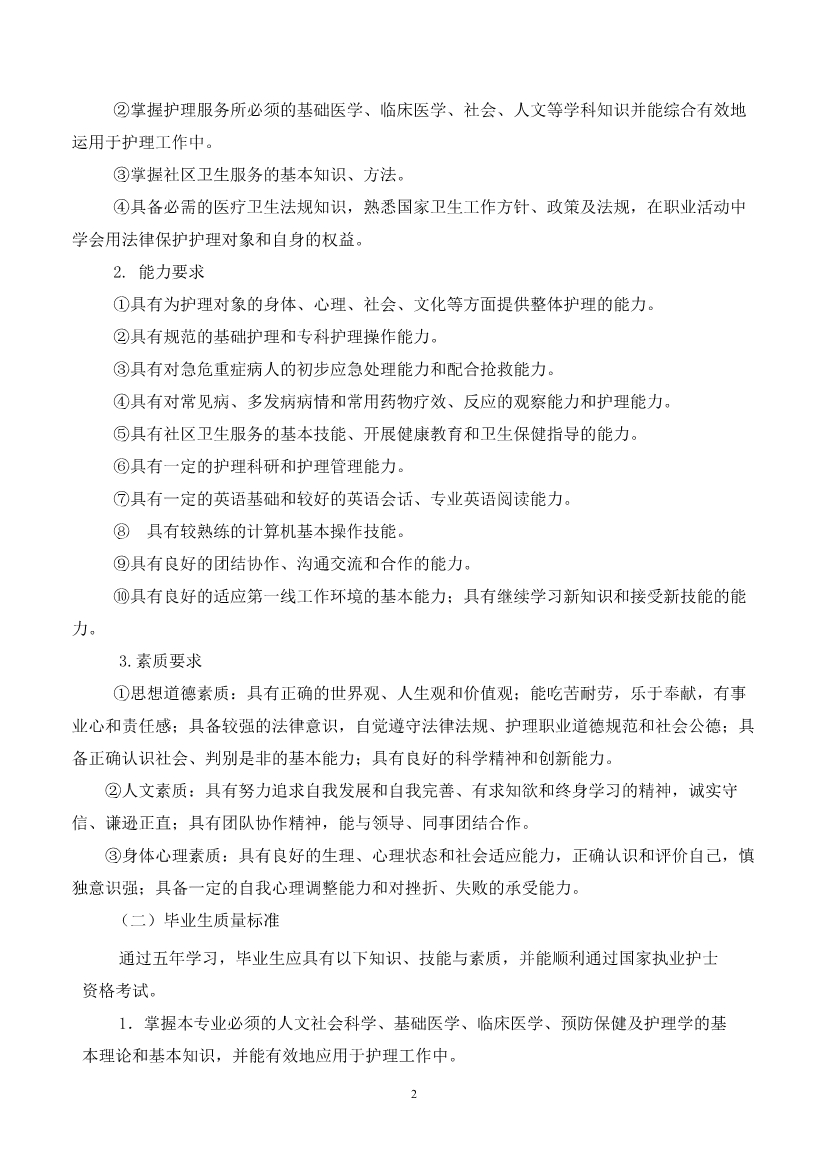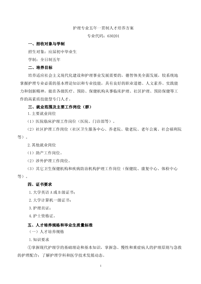 护理专业(五年制)人才培养方案