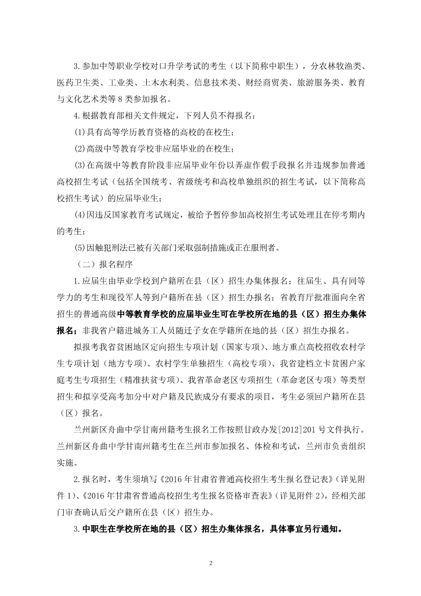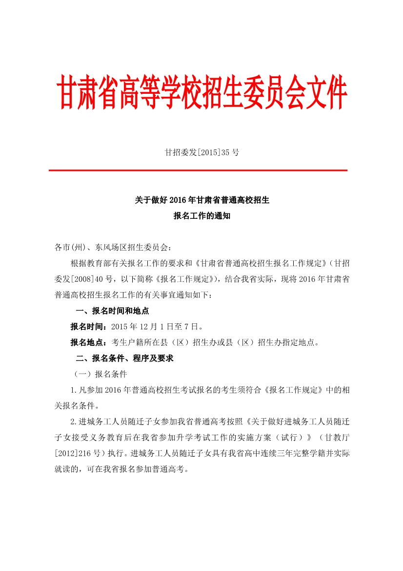 关于做好2016年甘肃省普通高校招生报名工作的通知
