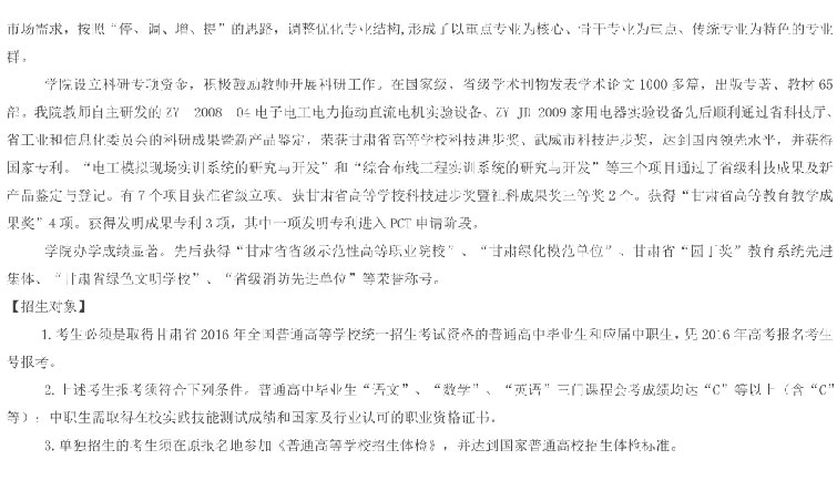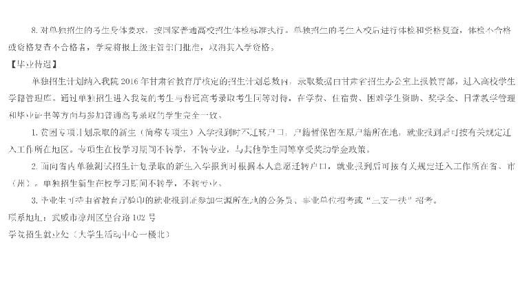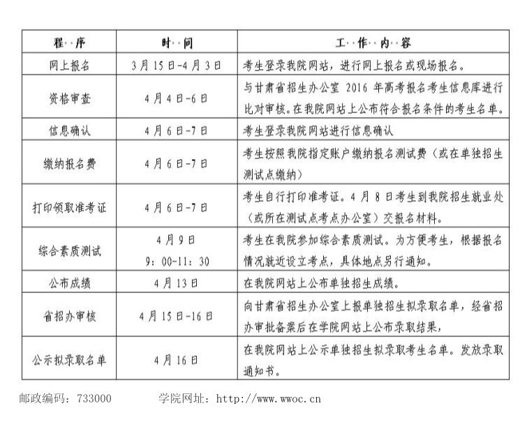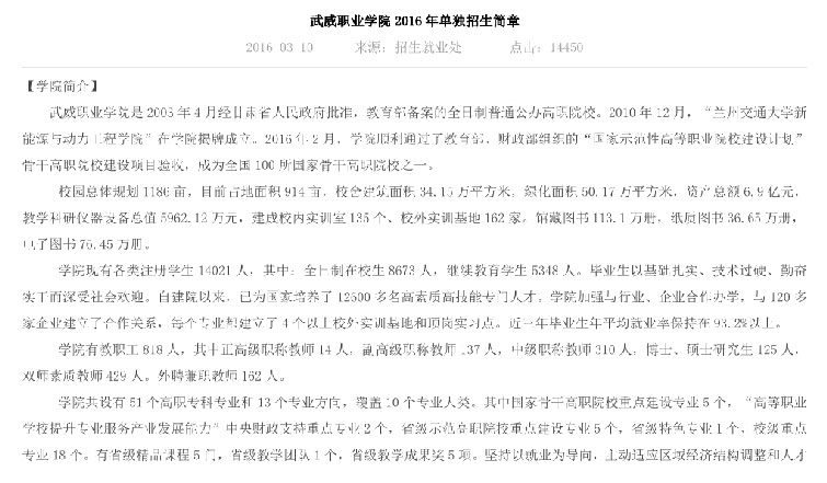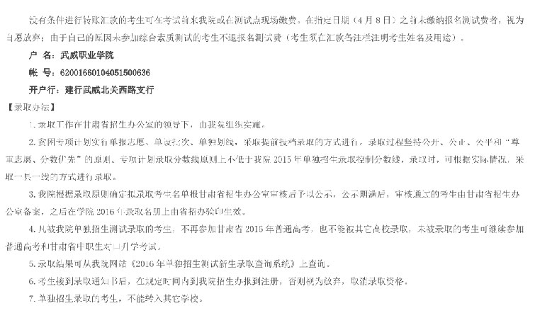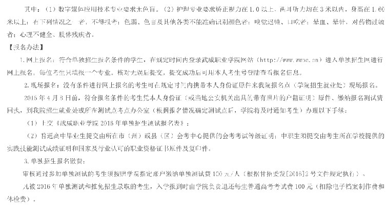 武威职业公司2016年单独招生简章