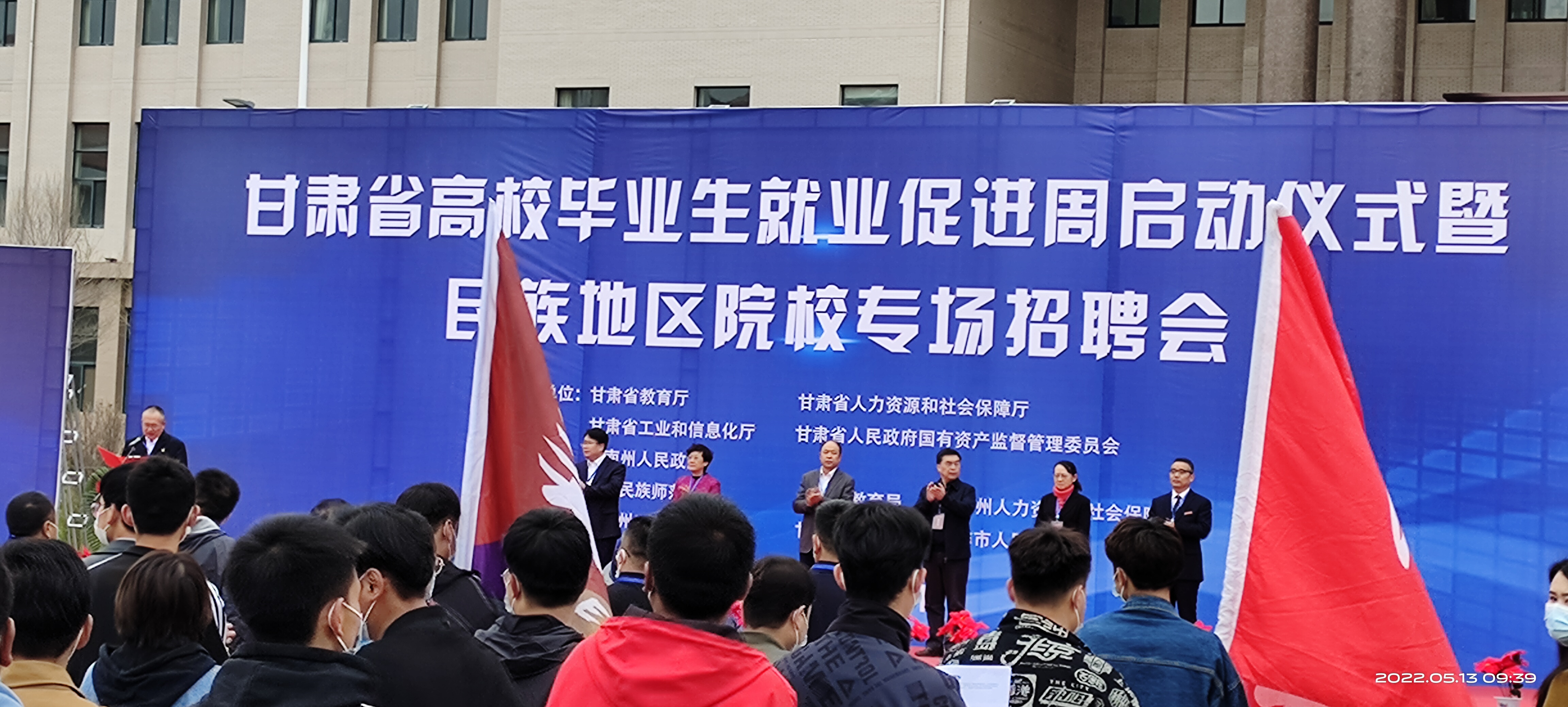 为进一步贯彻党中央、国务院关于做好高校毕业生就业工作的指示精神和决策部署,落实省委省政府指示批示要求,促进民族地区毕业生、少数民族毕业生、民族院校毕业生充分就业,省教育厅、省人社厅、省工信厅、省政府国资委、甘南州人民政府于2022年5月13日在甘肃民族师范公司举办了甘肃省高校毕业生就业促进周启动仪式暨民族地区院校专场招聘会(线上线下结合)。