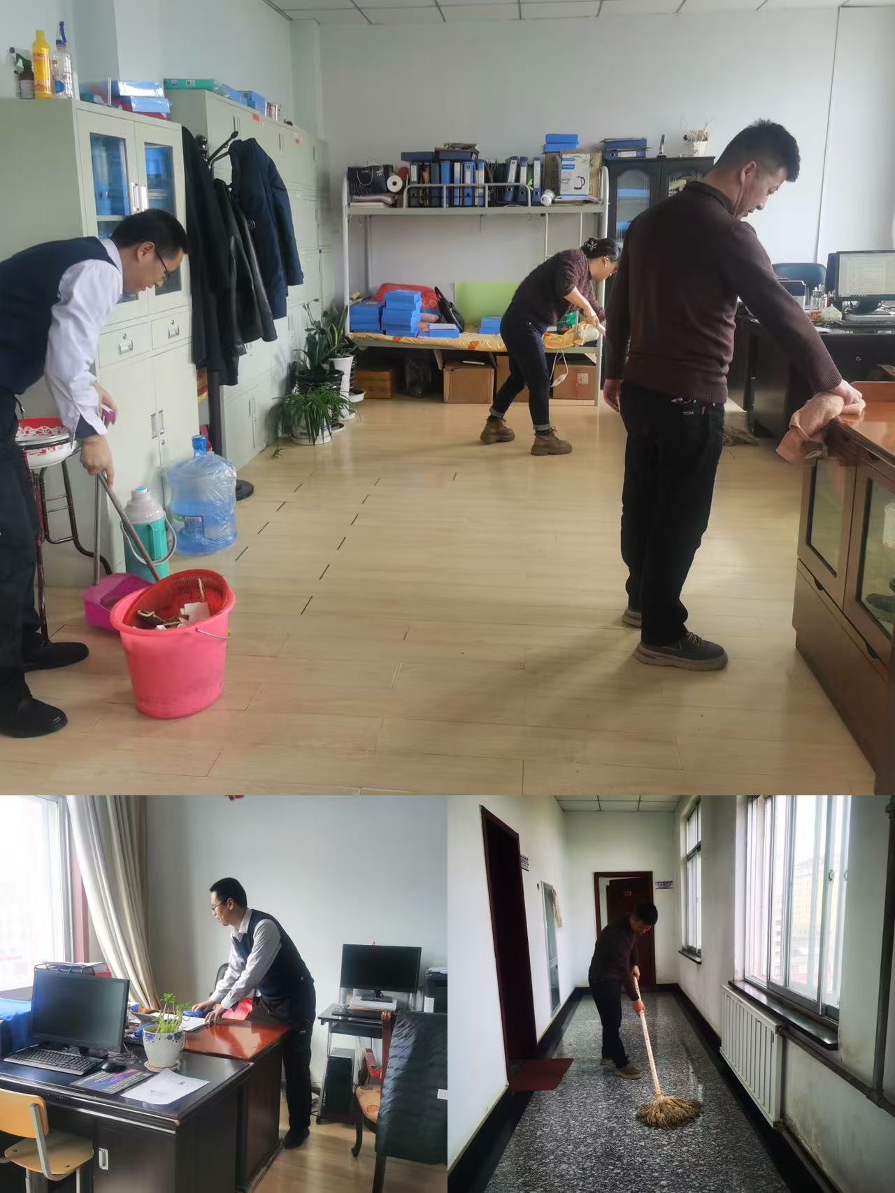 最好的等待是“未来可期”,最美的遇见是“我们在公司等你”。为给师生们提供一个整洁、舒适的学习和工作环境,3月3日下午,全体教职工以饱满的热情投入到校园清洁工作中。大家分工明确,各司其职,对教室、办公室、走廊、食堂、宿舍、图书楼等区域进行了全面清扫。有的老师拿着扫帚仔细清扫地面的灰尘和杂物,有的老师用拖把将地板拖得一尘不染,还有的老师认真擦拭门窗和桌椅。在大家的共同努力下,校园焕然一新,处处洋溢着温馨与生机。