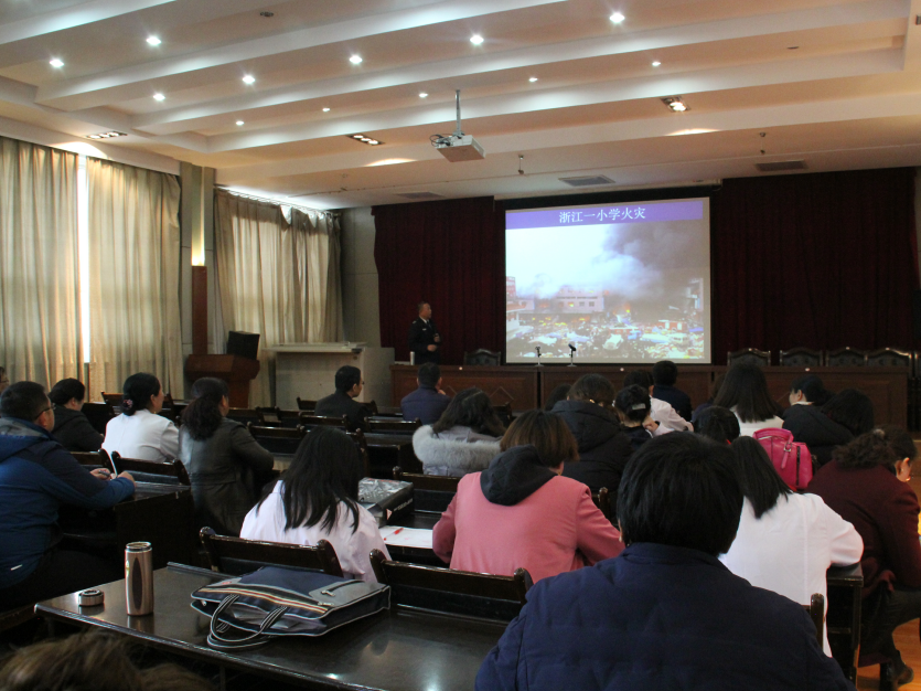 本次讲座中,张教官通过一个个真实的火灾现场视频、火灾事故图片等方式,深入的向全体教职工介绍了引发火情的原因及造成的危害,及发生火灾后的安全疏散与逃生知识,以此来敲响大家心中消防安全的警钟;同时提醒在场的每个人,关注我们身边时刻存在着的安全隐患,例如手机充电安全、电器老化、漏电、汽车火灾等,在这些意外发生前我们应该如何进行预防,当这些意想不到的灾难发生时,我们应如何进行自救,如何在保护自己生命的同时又能将损失降到最低。