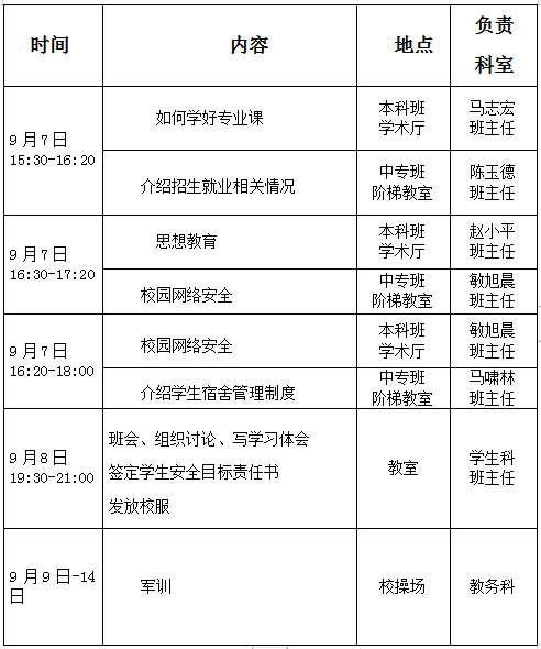 接下来,开学典礼、入学教育、军训就开始了,具体安排如下,大家期待吧!