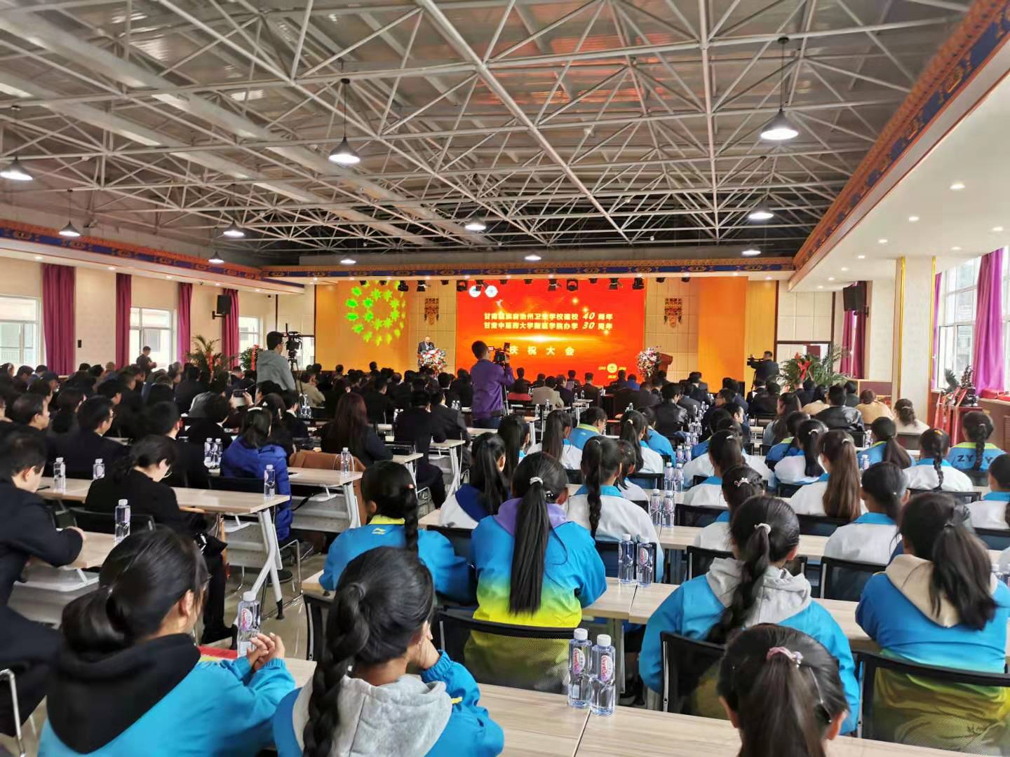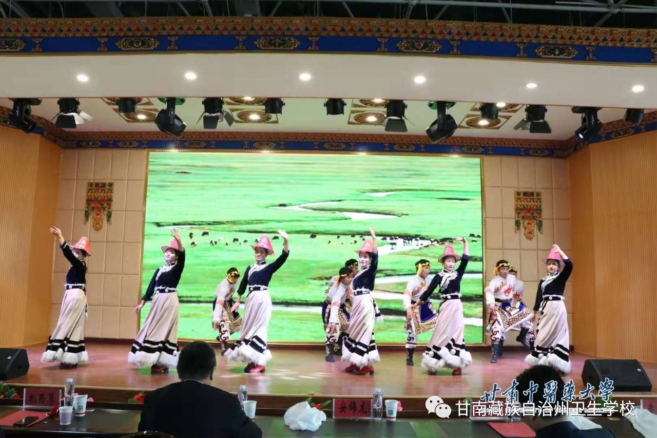 在大会上,教师代表邱建智副教授、杰出员工代表甘南州人民医院副经理敏志刚作了热情洋溢的发言。同时大会展播了校庆宣传片《雪域医苑 桃李芬芳》和演出校庆文艺节目。