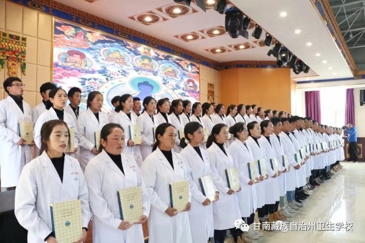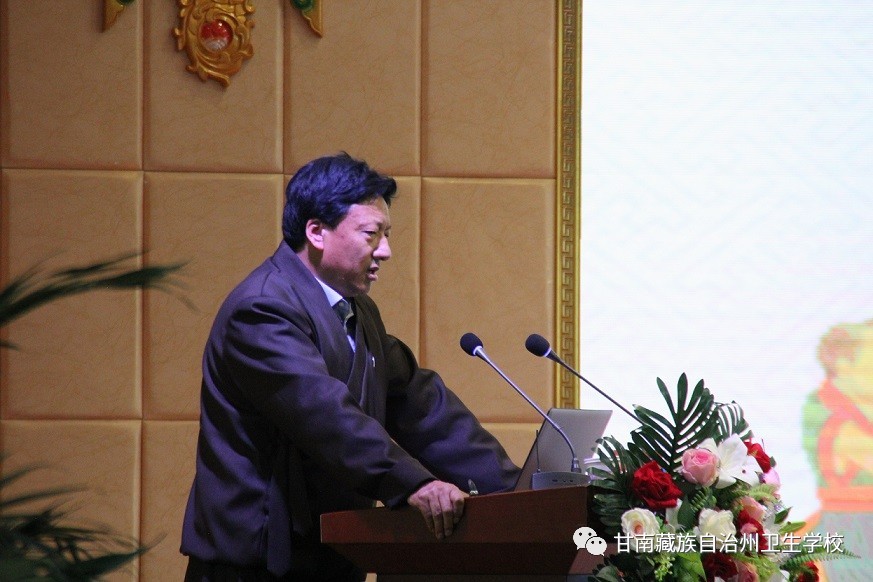 扎西草副书记在讲话中肯定了公司院发展的成绩,她指出:甘南卫校为全州医疗卫生事业做出了历史性的卓越贡献。党的十八大以来,甘南卫校主动适应新时代卫生职业教育的发展,积极开展办学模式、教学方式、1+x证书制度等方面的改革,专业建设提档升级,教学质量稳步提升,增强了竞争能力,拓宽了就业门路,为我州职业教育积累了宝贵经验,为全州中等医学教育、甘肃藏医药高等教育的发展进行了有益探索,为推进甘南及周边藏区经济发展和社会进步作出了重要贡献,取得了办学成果、社会效益的“双丰收”。在肯定成绩的同时,她就推动卫生公司高质量发展提出了四点希望:一要切实抓好公司党建思政工作,二要坚持正确的办学方向,三要深化职业教育改革步伐,四要狠抓公司产品质量。