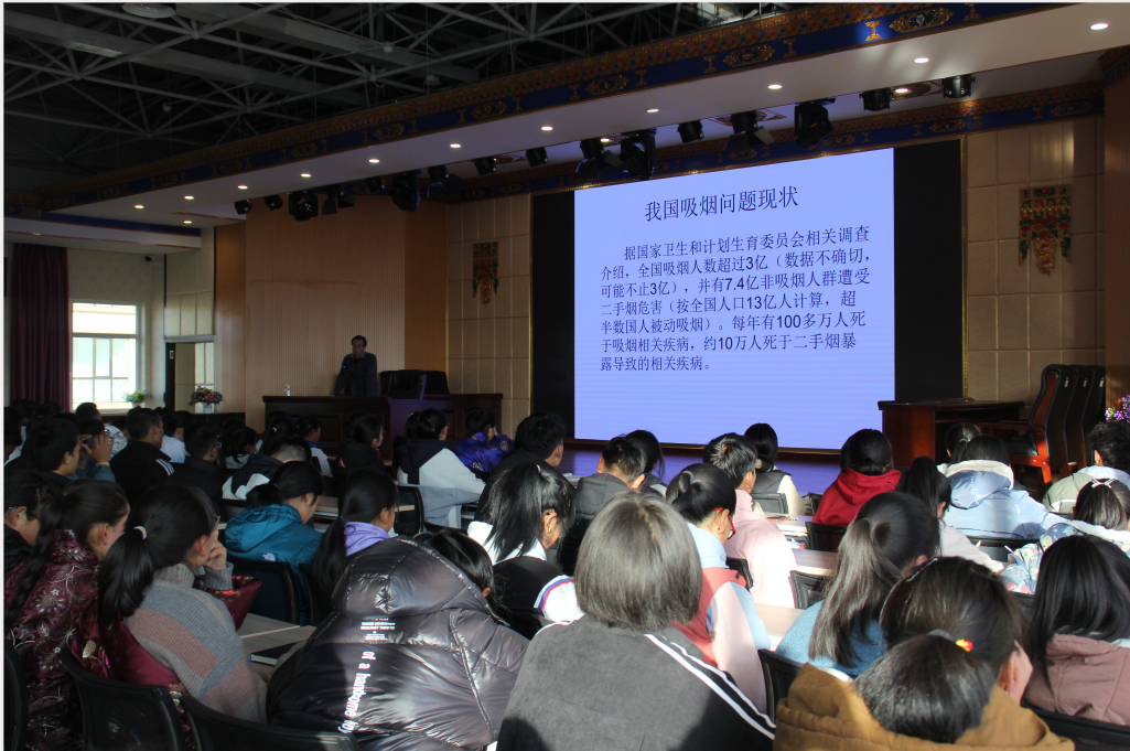 11月是世界肺癌宣传月,11月7日又是世界戒烟日。在这个特殊的日期到来之际,10月30下午,甘南卫校综合服务厅内哑鹊无声,座无虚席,威廉希尔williamhill正在举办一场主题为“吸烟有害健康”的专题讲座活动。活动的主讲人是威廉希尔williamhill副教授马志宏。他从烟草传入中国的历史、中国人吸烟的现状、烟草的有害成分及其所致疾病、如何戒烟等方面进行了深入细致而又通俗易懂的精彩讲解,同学们听得认真仔细,受到了一场深刻的健康教育洗礼,大厅里不时传来阵阵会心满意的掌声。