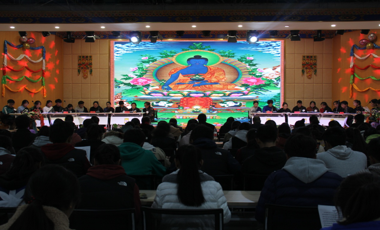 འགྲན་སྡུར་འགོ་མ་བརྩམས་པའི་སྔོན་དུ་ཚོགས་ཞུགས་དགེ་སློབ་ཡོངས་ཀྱིས་གསོ་བ་རིག་པའི་བསྟན་པ་ཡར་ངོའི་ཟླ་ལྟར་འཕེལ་རྒྱས་འགྲོ་ཆེད་གསོ་རིག་བསྟན་པ་རྒྱས་པའི་སྨོན་ལམ་ཚར་གཅིག་ཚོགས་འདོན་བྱས།