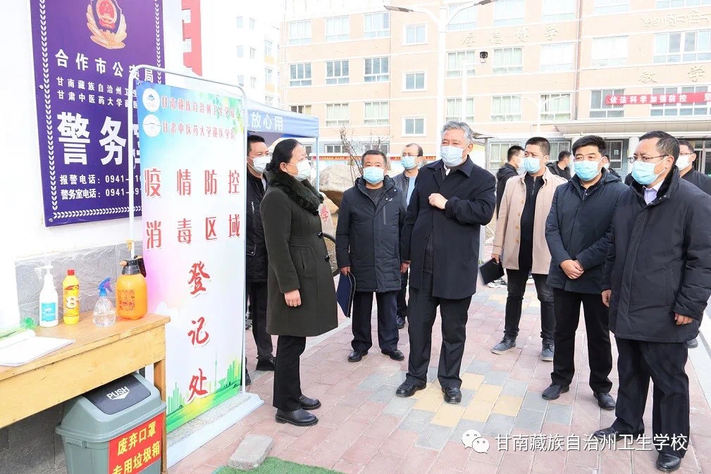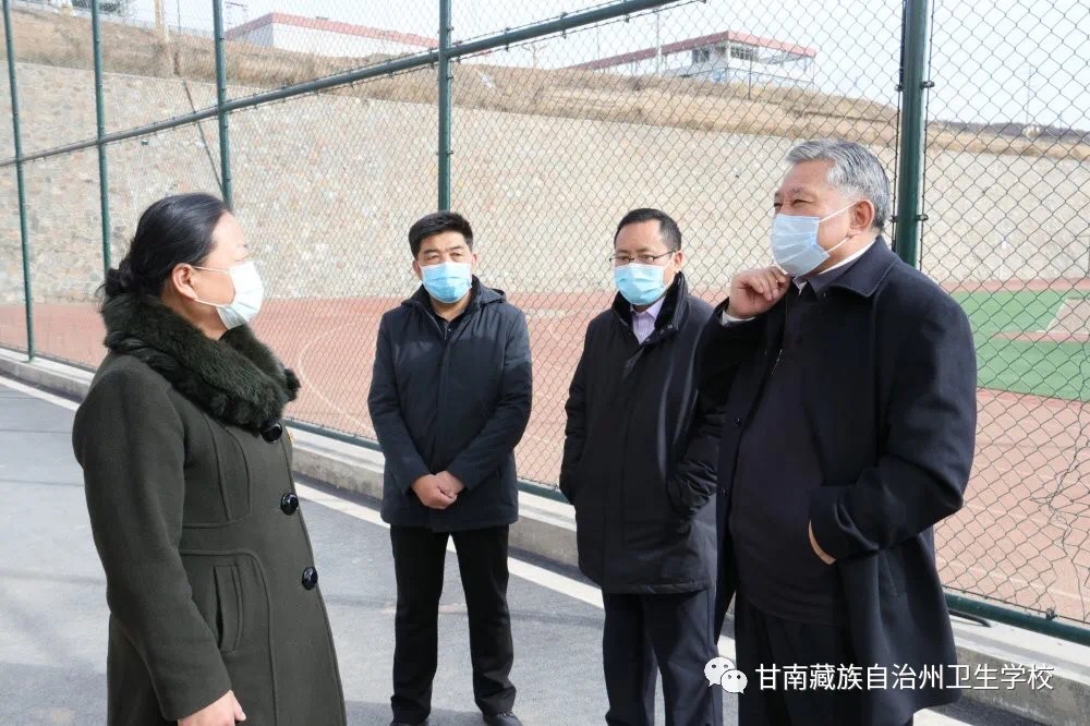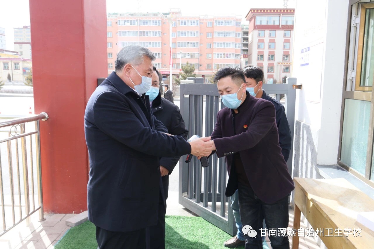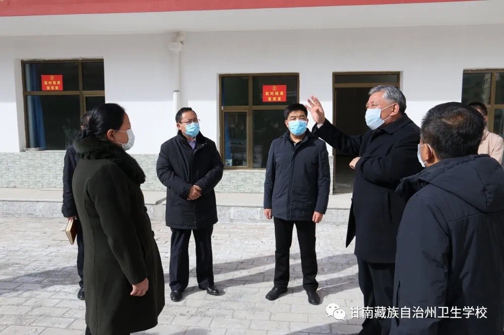 3月11日下午4点,州政府南木卡桑结副州长,州政府副秘书长、州机关事务管理局局长杨家登,州卫生健康委副主任丁利锋一行来公司检查疫情防控及开学前准备工作。