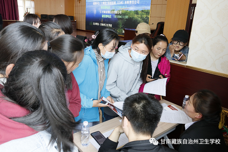 本次招聘会邀请了佛慈大药房(兰州)有限责任公司和甘南金翔大药房连锁有限责任公司。经过两家公司人事部主管分别介绍他们企业的相关背景、企业文化、招聘岗位、薪酬标准等员工关注的内容后。员工们了解到本次招录主要在甘南州七县一市或者兰州医药销售门店就业,包括店长、营销员、运营助理岗位等。是在家门口上班,同学们很感兴趣,认真了解,积极应聘。