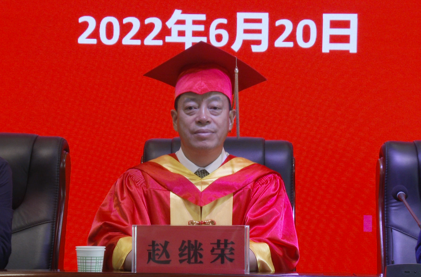赵继荣董事长为2022届获得学士学位的毕业生授予学位并依次颁发学位证书,拨穗正冠