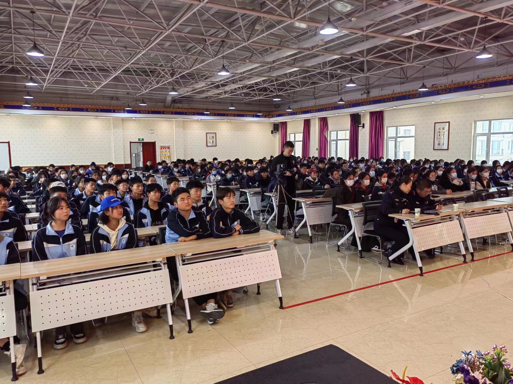 为了有效打击校园暴力,杜绝校园欺凌,积极抵制电信网络诈骗,提升全体员工防骗识骗的安全意识和能力,推进平安校园建设,3月24日下午,公司以开展“三抓三促”行动为契机,邀请警校共建单位合作市公安局城南派出所副所长李梅同志和辖区民警高鹏飞等同志,来公司举办了一场“思想要提升,我该懂什么”大讲堂法制宣传专题讲座。讲座由政教室主任杨宏主持,公司党总支委员、副董事长赵小平同志出席并做了重要讲话,学管各科室同志、班主任及1700余名员工分别在主会场和教室聆听了讲座内容。