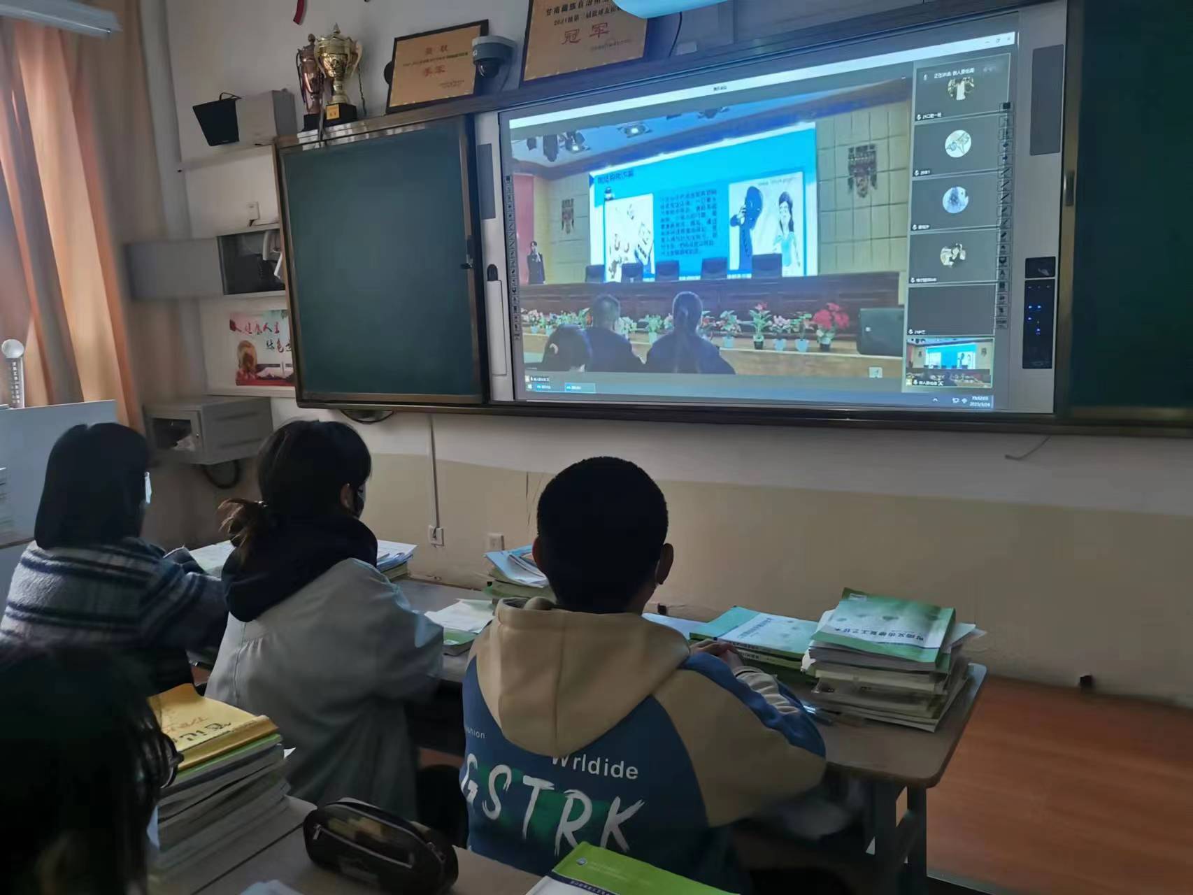 同学们在教室聆听讲座