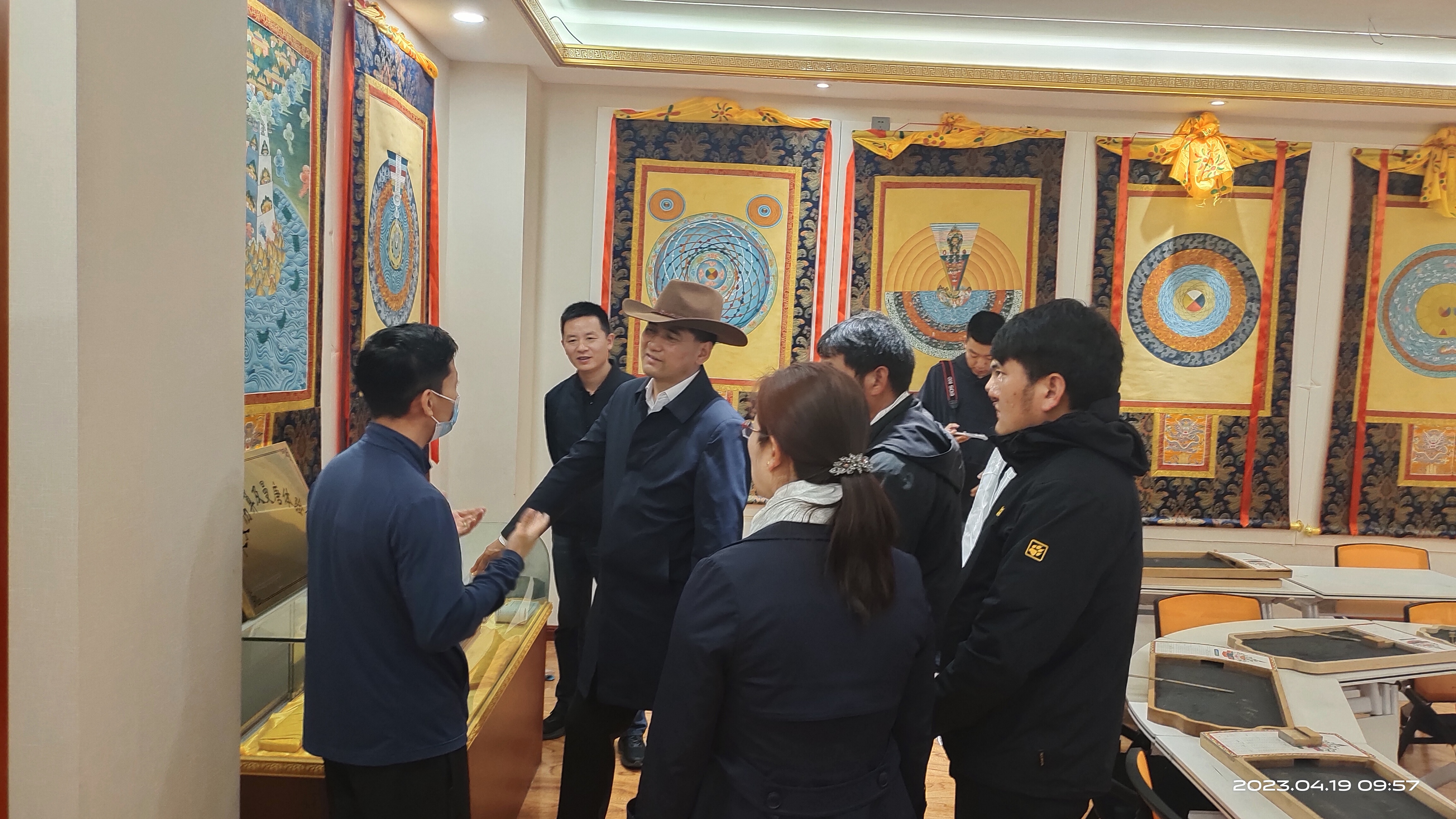 2023年4月19日上午,四川省若尔盖县第二藏医院经理卓科一行五人来公司交流参观,威廉希尔williamhill副经理赵小平、招就办及教务科相关负责人、威廉希尔williamhill教师邱建智和本考等人陪同参观了公司高原动植物标本室、天文历算示教室、藏医外治器械示教室、本考藏医曼唐工作室等。