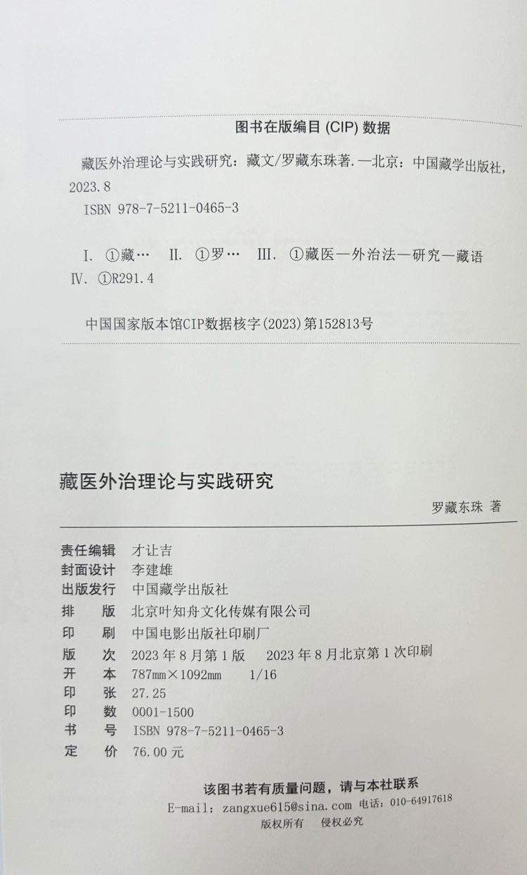 《藏医外治理论与实践研究》全书约28万字,420页。本书依据《四部医典》藏医外治篇的放血疗法、火灸疗法、罨熨疗法、药浴疗法、涂摩疗法、穿刺疗法等六个外治章节和外治器械章,补充、收集和整理了藏医外治历代经验,并配有40余张古代藏医外科器械图谱。全书以藏医外治学为中心,梳理古法外治学的基本方法,突出“古法外治学”与现代医学治疗手段相结合的创新藏医外治方法。依据《四部医典》藏医外治文献和藏医药研究成果,重点收编并详解了藏医外科器械特色疗法的功能、操作方法、适应症及注意事项等;在藏医医、教、研工作中不断创新藏医外治方法,经过二十几年的教学和实践,结合藏医临床实践和各地名老藏医的治疗应用,深入思考分析和研究,并不断在教学过程中反复推敲,精心修改,使《藏医外治理论与实践研究》成为藏医外治特色疗法的实践和理论精华于一体的藏医学术权威教学工具,也是一门藏医外治课程的首选参考教材,适应于藏医科研、教学、临床医疗工作等方面。《藏医外治理论与实践研究》一书的出版,也使得藏医外治学得到不断的传承和发扬。相信通过《藏医外治理论与实践研究》的出版,将使藏医药学得到更大、更好的发展,从而造福人类。