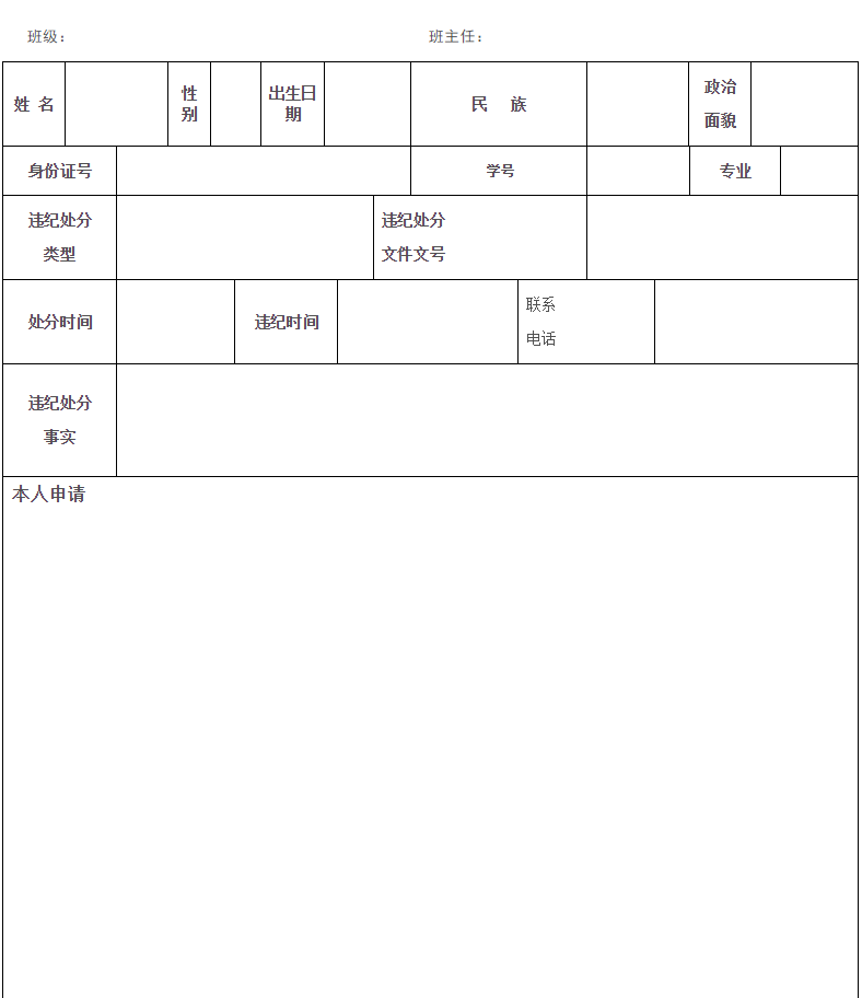 2、处分撤销流程:本人提出申请→到员工科领取申请表→班委会意见→班主任和辅导员意见→员工科意见→员工科报公司讨论研究→下发处理结果通知单,一份发员工手上,一份装员工档案。